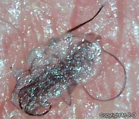 MN: Was würden Sie tun? Anfänglich habe ich einfach alles probiert, was Küche und Kühlschrank hergaben, von Öl über Senf bis hin zu Mayonnaise, einfach alles. Zunächst dachte ich wie Viele, ich hätte eventuell Scabies-Milben, und habe dann auch versucht, diese zu ersticken. Aber das hat nicht viel gebracht, da es keine Milben sind, und das leuchtet am Ende jedem Betroffenen langsam ein, da Milben sich nicht in der Nase, Augen, Ohren oder im Mund aufhalten. Auch die peinlichen Konsultationen bei einigen Hautärzten samt ihren verschriebenen Akariziden / Insektiziden, also Nervengiften wie Permethrin oder Lindan, haben nichts gebracht. Nach ein paar Monaten wusste ich definitiv, dass da etwas anderes am Werk sein musste, etwas, das nicht geläufig oder sogar noch unbekannt war.