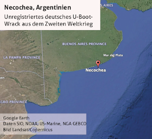 Unser Team verfügt jedoch über Informationen, die auf die Existenz von zwölf U-Boot-Wracks in Argentinien in den Regionen San Clemente del Tuyú (2), Necochea (1), San Blas (1), Caleta de los Loros (4), Puerto Madryn (1) und Bahia Huevo (3) hindeuten.